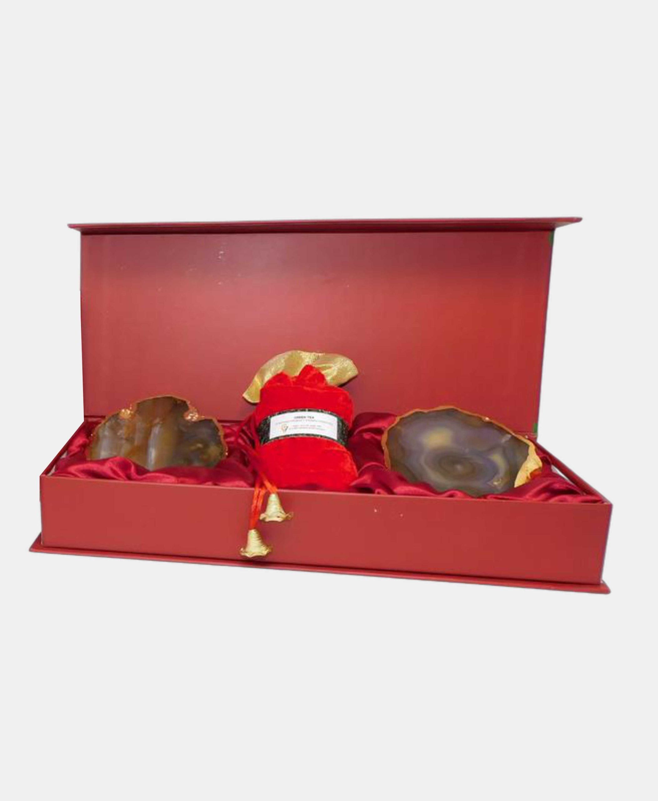 Add the calming and healing properties of agates to your personal space with this set of two Agate Crystal Coasters. With 24 carat gold foil borders and a smooth finish, these coasters add a touch of luxury to any space offering both aesthetic appeal and functional protection.