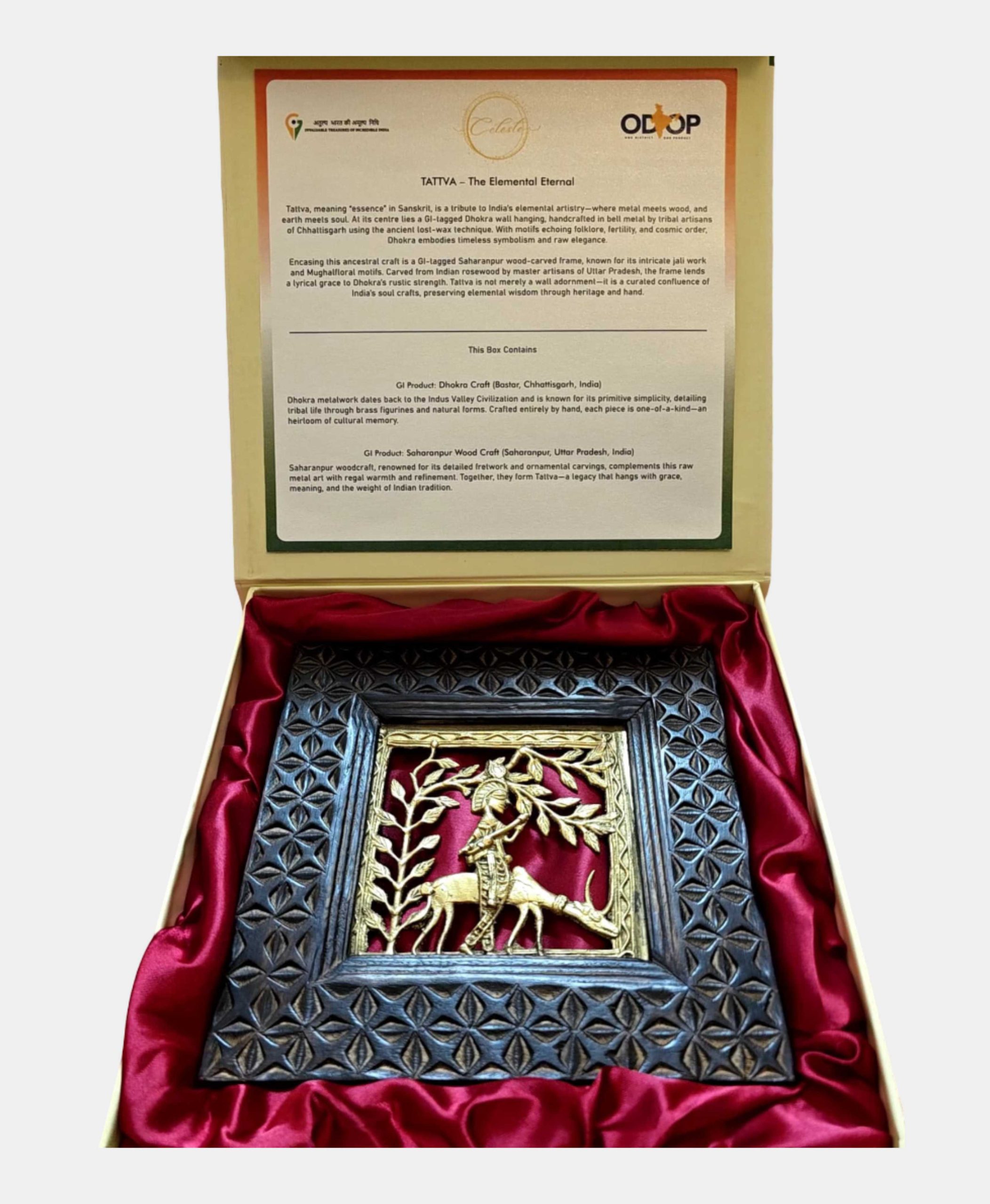 Saharanpur woodcraft, renowned for its detailed fretwork and ornamental carvings, complements this raw metal art with regal warmth and refinement. Together, they form Tattva—a legacy that hangs with grace, meaning, and the weight of Indian tradition.