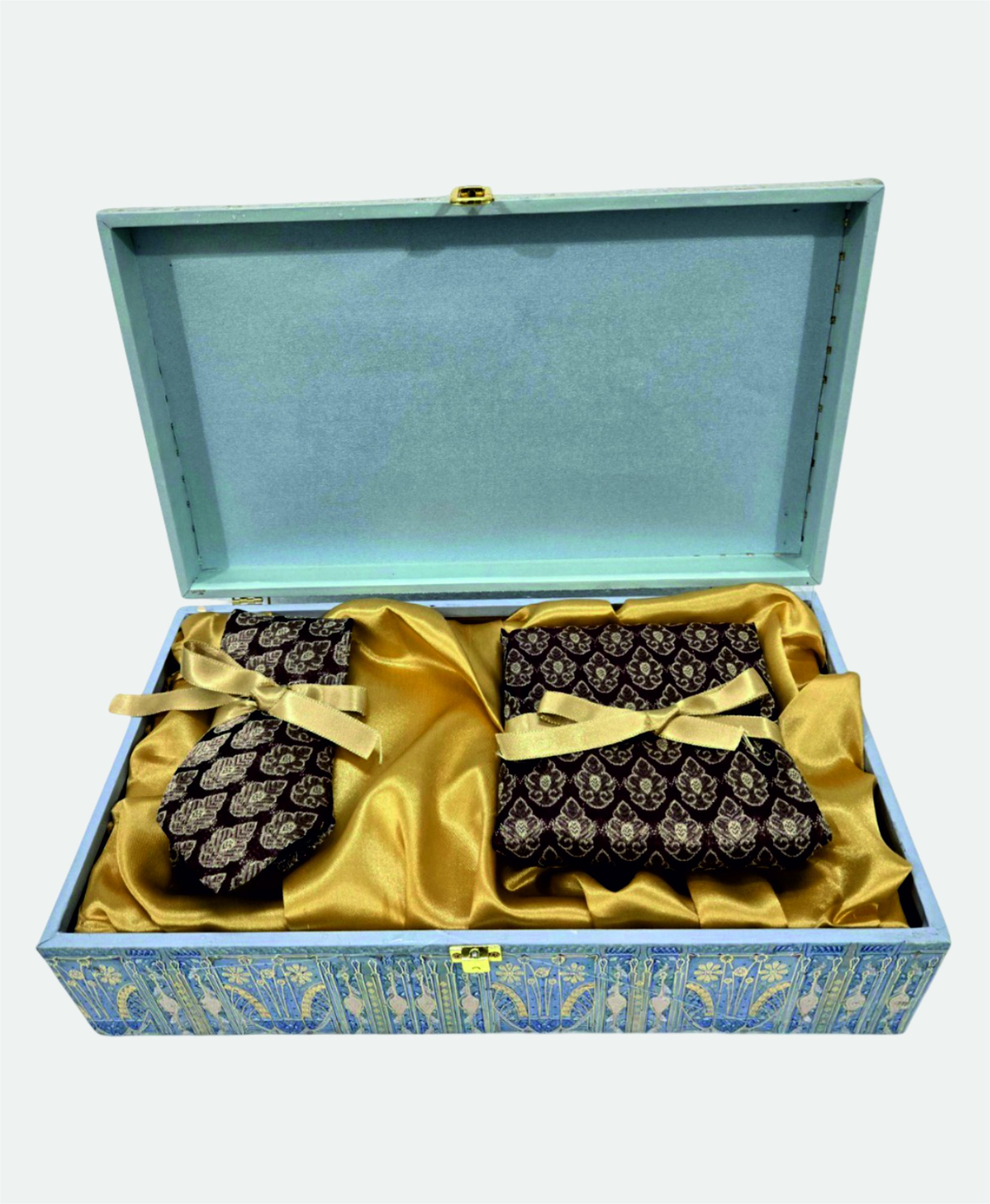 Woven from the same sumptuous silk jacquard as its companion tie, the Banarasi Silk Pocket Square adds a layer of richness and refinement to formal attire. With its luminous sheen and intricate detailing, it is more  than an accent—it is a nod to India’s storied textile legacy, worn by those who value timeless artistry in every detail.